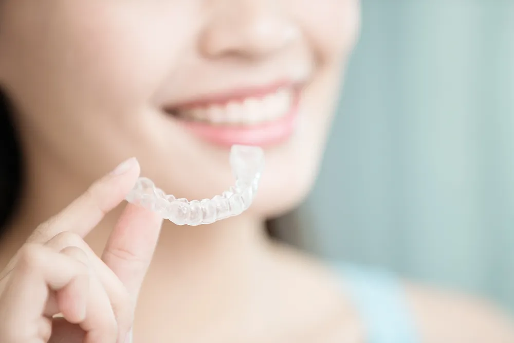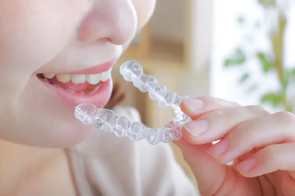 マウスピース矯正は通常のワイヤー矯正と違い、透明なマウスピースを装着することで、口元が目立たないことが特徴です。また、マウスピースは取り外しが可能で、食事中や歯みがきの際は外していつも通りに生活ができます。また、治療中のトラブルも少なく日常生活の制限がないことが多きメリットと言えます。